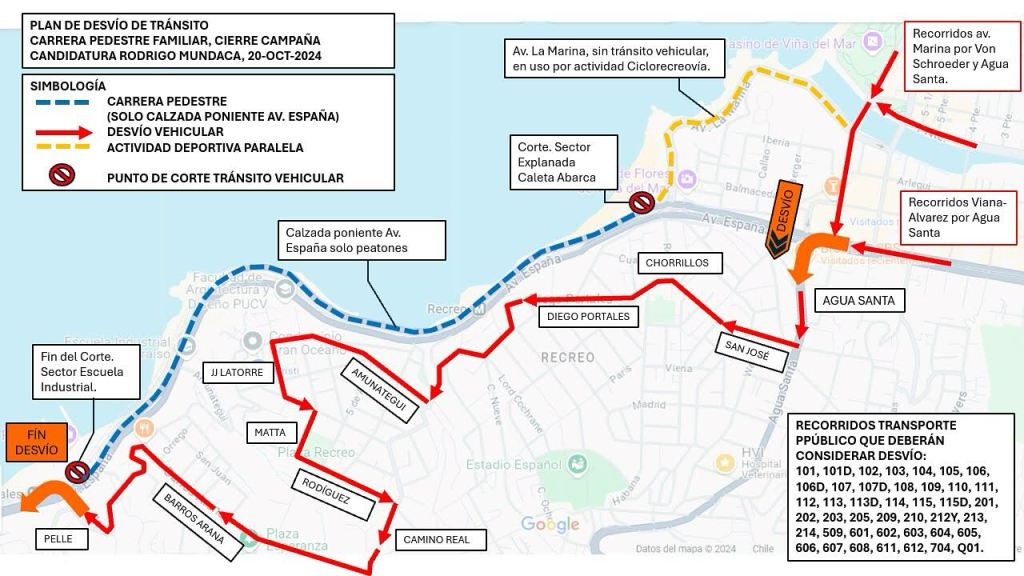 ⭕ AHORA | Este domingo 20 de octubre se realizará la corrida familiar denominada «Corre por una región que protege», evento deportivo de campaña del candidato Gobernador Regional, Rodrigo Mundaca, que se efectuará en Caleta Abarca de Viña del Mar y que extenderá su recorrido por Avenida España desde el Reloj de Flores hasta Caleta Portales de Valparaíso, por lo que se mantendrá cerrada la calzada poniente de Avenida España (en dirección a Valparaíso) entre las 08:30 y las 13:00 horas. Durante este horario, el flujo vehicular que se desplace desde Viña del Mar a Valparaíso, deberán redireccionarse por Agua Santa, Recreo y Cerro Esperanza o bien, optar por acceder desde la zona alta de ambas ciudades, esto es, Vía Las Palmas, Ruta 68 y Santos Ossa.