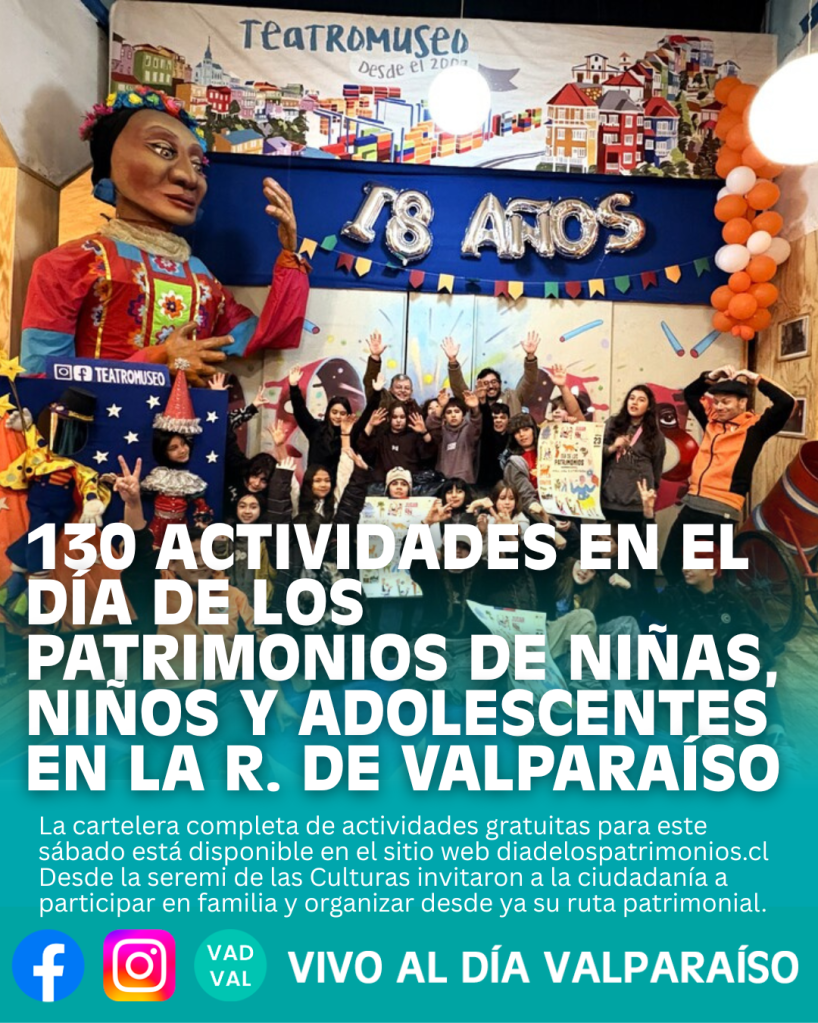 La Región de Valparaíso contará con 130 actividades en 24 comunas. Habrá recorridos guiados, horarios extendidos, teatro, música, talleres y diversas expresiones de patrimonio material e inmaterial en museos, bibliotecas y espacios públicos.