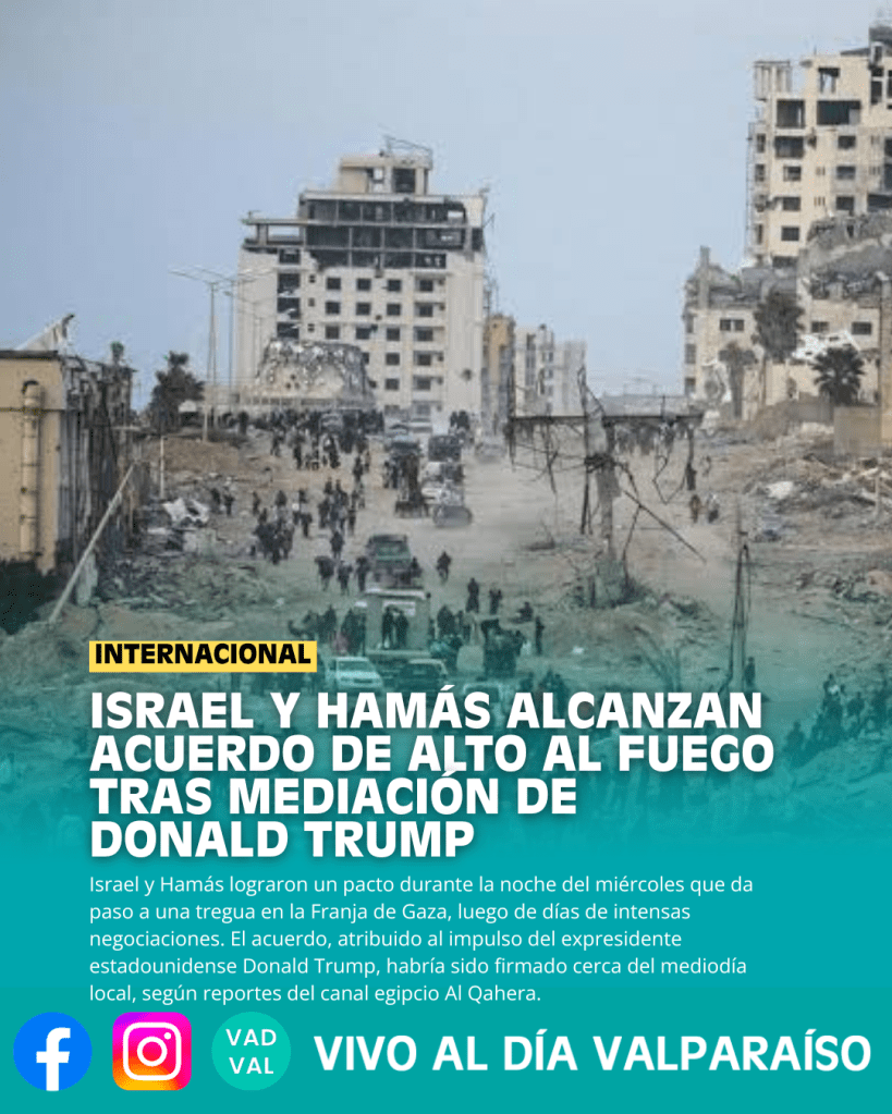⭕️ INTERNACIONAL| El acuerdo, atribuido al impulso del expresidente estadounidense Donald Trump, habría sido firmado cerca del mediodía local, según reportes del canal egipcio Al Qahera. No obstante, para su activación definitiva necesita el visto bueno del gabinete de seguridad y del gobierno de Benjamín Netanyahu.