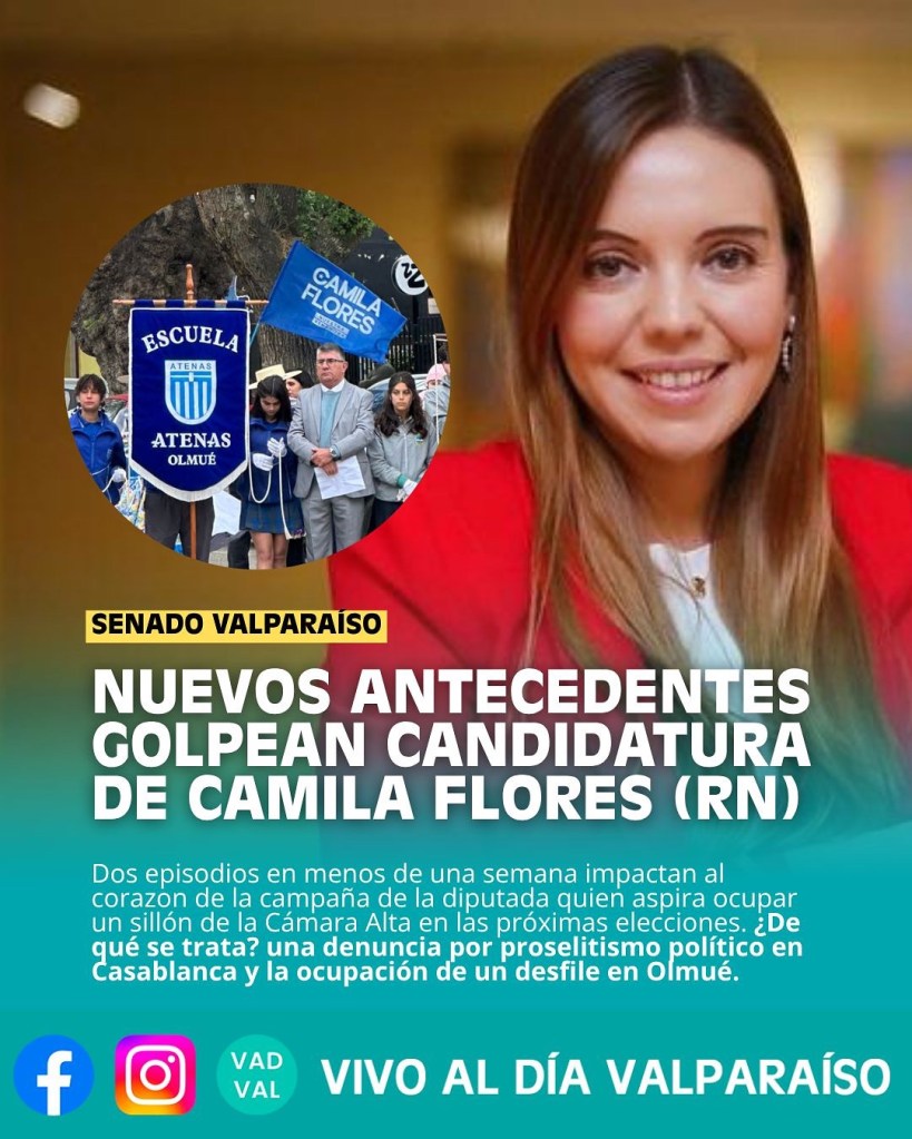 Nuevos antecedentes apuntan a que este sería un comportamiento reiterado del comando de la diputada y candidata a senadora por la Región de Valparaíso, Camila Flores, siendo esta ocasión, en donde habrían realizado actividades de campaña durante el desfile cívico por el aniversario 132 de la comuna de Olmué. Según la acusación, miembros de su equipo repartieron volantes con propaganda electoral e incluso intentaron sumarse al desfile portando banderas con el nombre de la candidata.