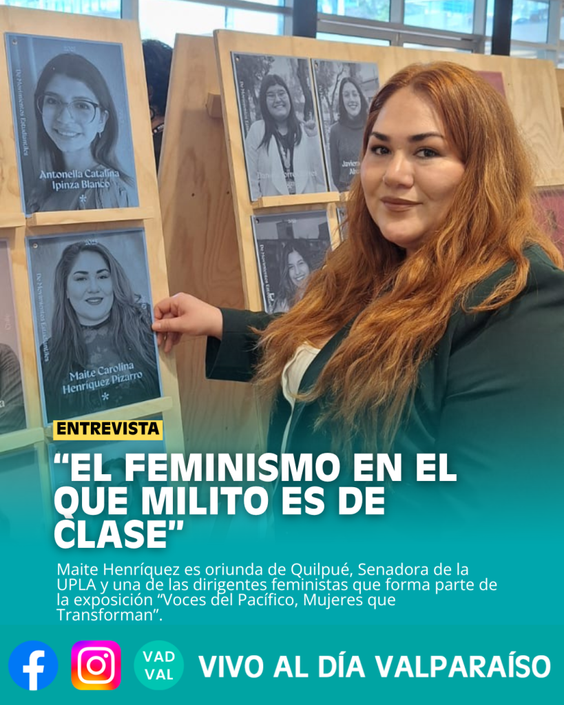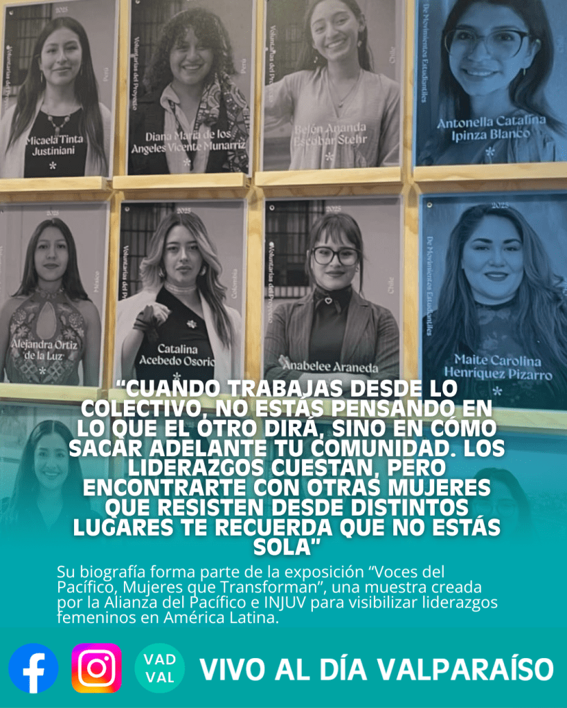 Maite Henríquez Pizzaro, lideresa feminista de la Universidad de Playa Ancha, fue seleccionada para formar parte de la exposición Voces del Pacífico, Mujeres que Transforman, una muestra internacional impulsada por voluntarias de la Alianza del Pacífico e INJUV que busca visibilizar a mujeres que han marcado sus comunidades en Chile, Perú, Colombia y México. Desde su biografía y su historia familiar, Maite reflexiona sobre el sentido de ocupar espacios públicos desde un feminismo popular, el valor del trabajo colectivo y la emoción de verse representada entre figuras que admira.