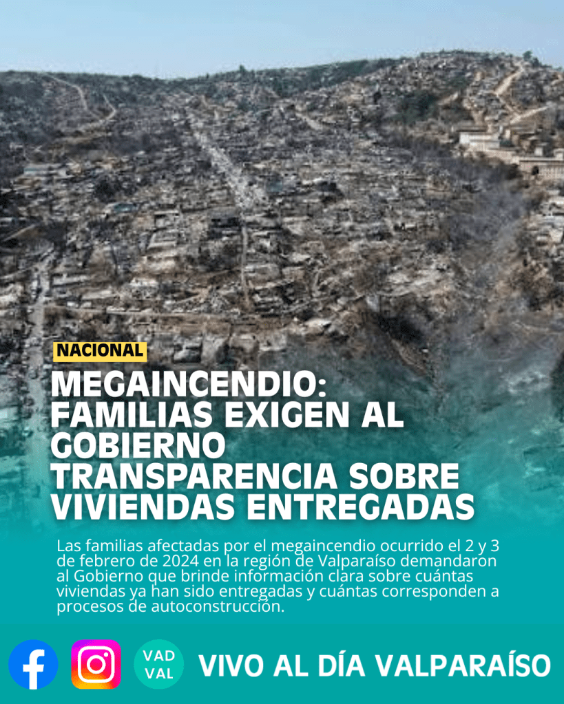 Las familias afectadas por el megaincendio ocurrido el 2 y 3 de febrero de 2024 en la región de Valparaíso demandaron al Gobierno que brinde información clara sobre cuántas viviendas ya han sido entregadas y cuántas corresponden a procesos de autoconstrucción.
