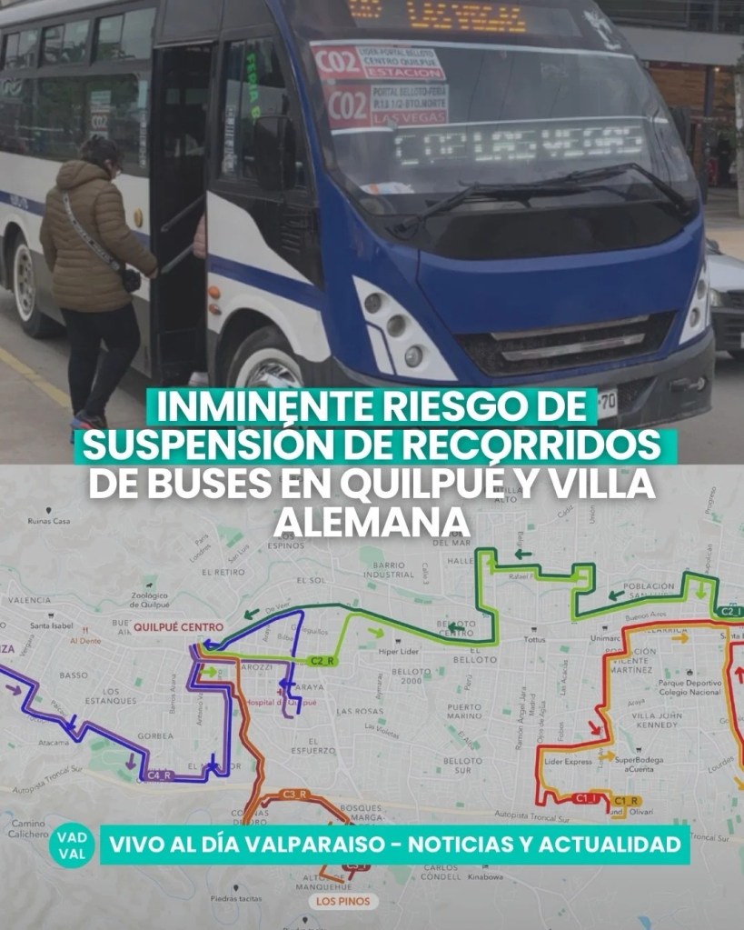 Preocupación existe en Quilpué y Villa Alemana ante el eventual cese de operaciones de los recorridos C01, C02 y C03 del Transporte Metropolitano de Valparaíso, situación que podría concretarse el 31 de enero y afectar a cerca de 5 mil usuarios de ambas comunas.