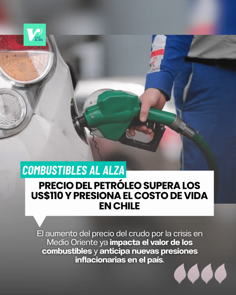El precio internacional del petróleo superó los 110 dólares por barril en los últimos días, impulsado por la escalada de tensiones en Medio Oriente, un escenario que ya comienza a tener efectos en la economía chilena.