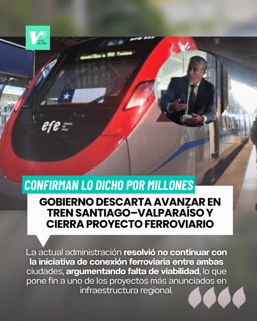 El proyecto del tren Santiago–Valparaíso quedó definitivamente descartado luego de que el Gobierno decidiera no avanzar en su ejecución, cerrando así una iniciativa que por años fue presentada como solución estratégica para la conectividad entre la capital y la región.
